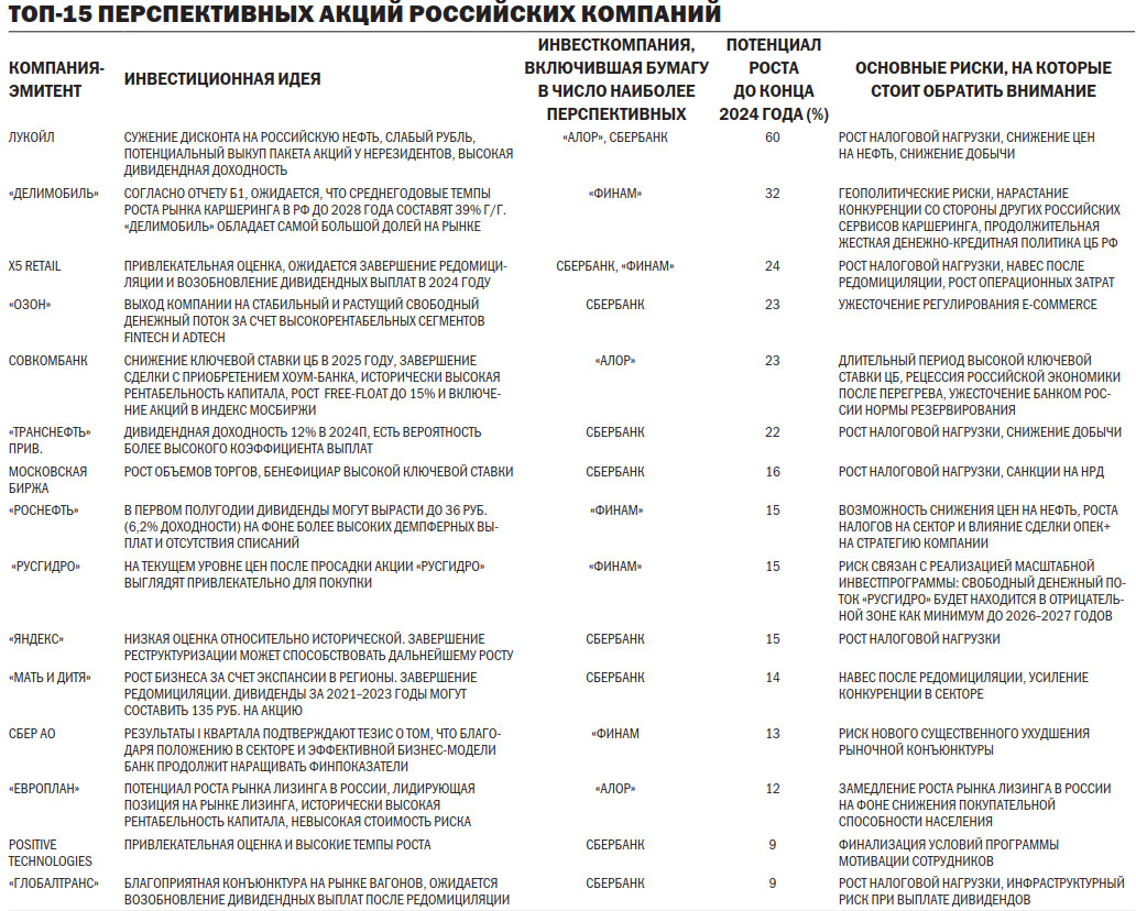 «Мы позитивно оцениваем перспективы роста российских акций»,— говорит аналитик УК «Альфа-Капитал» Юлия Мельникова. Сейчас начинается основной дивидендный сезон, поясняет она, и эти выплаты будут дополнительным драйвером роста, так как часть из них может быть реинвестирована в рынок. Дивидендная доходность (в основном по сырьевым компаниям), по ее оценкам, в среднем составляет 15%. При этом общий интерес к рынку в целом растет на фоне новых размещений, есть положительные изменения в части увеличения прозрачности и более полного раскрытия информации эмитентами. «Текущая оценка ряда компаний сохраняет дисконт к рынку относительно исторических значений либо относительно потенциала роста бизнеса. То есть фундаментальная составляющая остается значимым источником роста»,— добавляет аналитик.
