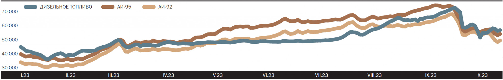 Цена топлива в европейской части России с начала года (руб./тонна)