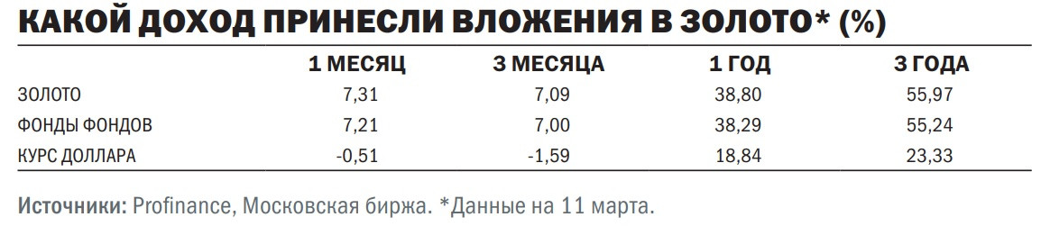 Впервые с апреля 2023 года лучшей инвестицией по итогам месяца стало золото. По оценке «Денег», покупка благородного металла в первой декаде февраля за последующий месяц, закончившийся 11 марта, принесла бы физическому лицу 7,3% дохода. Этот результат с лихвой компенсировал потери начала года, когда инвестиции в металл обесценились немногим более чем на 1%.