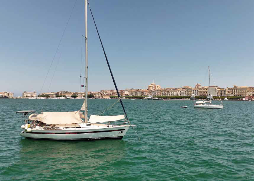 Гигантскую Этну мы увидели только на закате третьего дня: внезапно заходящее солнце нарисовало весь силуэт этой великой горы. Она была огромной. До берега оставалось всего лишь 20 миль, до Сиракуз — около сорока. Увидеть вулкан раньше нам помешало жаркое солнце. Оно испаряет огромное количество воды Средиземного моря. В результате возникает дымка, которая мешает разглядеть берега. Это любопытное наблюдение, ведь древним морякам, у которых не было GPS, такая плохая видимость серьёзно осложняла навигацию.