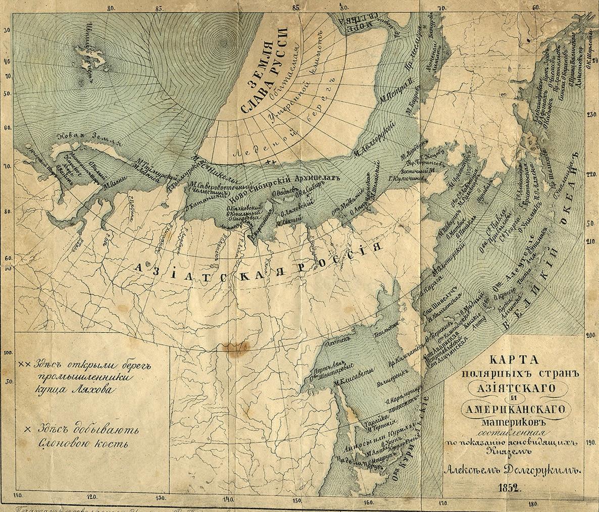 Более 150 лет назад была осознана важность этого региона для России, а сам он даже нанесён на карту. Её составил Алексей Долгорукий в качестве приложения к своей книге «Органон животного месмеризма», вышедшей в Петербурге в 1860 году. «Карта полярных стран Азиятскаго и Американскаго материков, составленная по показанию ясновидящих князем Алексеем Долгоруким», хранящаяся в Российской национальной библиотеке, будет показана на выставке «Карты земель российского Севера: реальность и мифы» в Москве в Российской государственной библиотеке. (Выставка проходит в рамках межмузейного проекта «Освоение Севера. Тысяча лет успеха», инициированного компанией «Норникель».)
