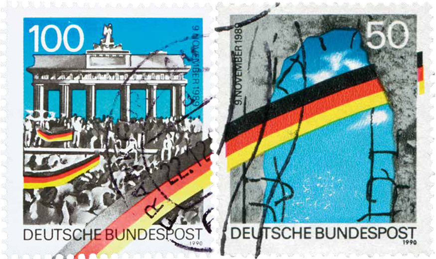 Немецкие марки, выпущенные в честь годовщины падения Берлинской стены. 1990 год.
