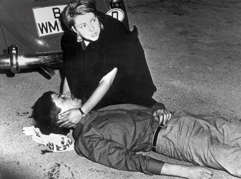 Смертельно раненный студент Бенно Онезорг и преподаватель Свободного университета Берлина Фредерика Хаусманн. 2 июня 1967 года
