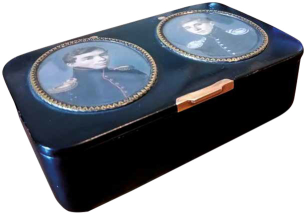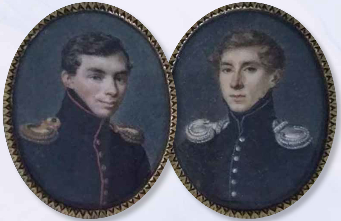 Очевидно, как подарок отцу или матери была изготовлена небольшая деревянная шкатулка с врезанными в верхнюю откидную крышку двумя миниатюрными портретами. На овалах в одинаковой золочёной оправе (4 х 3,2 см) изображены молодые обер-офицеры в вицмундирах лейб-гвардии Конного и лейб-гвардии Кирасирского полков. Судя по форме их эполет с коротким широким корешком и большим круглым полем с тремя витками, миниатюры написаны в 1820-х годах. По своему возрасту эти молодые гвардейцы должны были иметь самые первые чины корнета или поручика. С 1 января 1827 года им на эполетах полагалось носить одну или три звёздочки соответственно. Однако у офицеров на миниатюрах звёздочки отсутствуют. Следовательно, портреты написаны в начале или середине 1820-х годов.