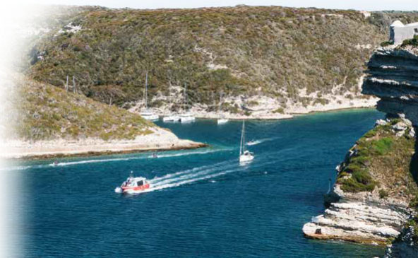 Если в мире и существует бухта, где, по мнению Гомера, погибло 11 кораблей Одиссея, то это она. На малом ходу, с убранными парусами «Ойкумена» входила в узкий проход на самом юге Корсики. Отвесные скалы сегодня венчают стены средневекового Бонифаччо. Серая кладка, обвитая плющом, такая же посеревшая черепица — камни самого южного корсиканского города неожиданно нам показались северными и холодными.