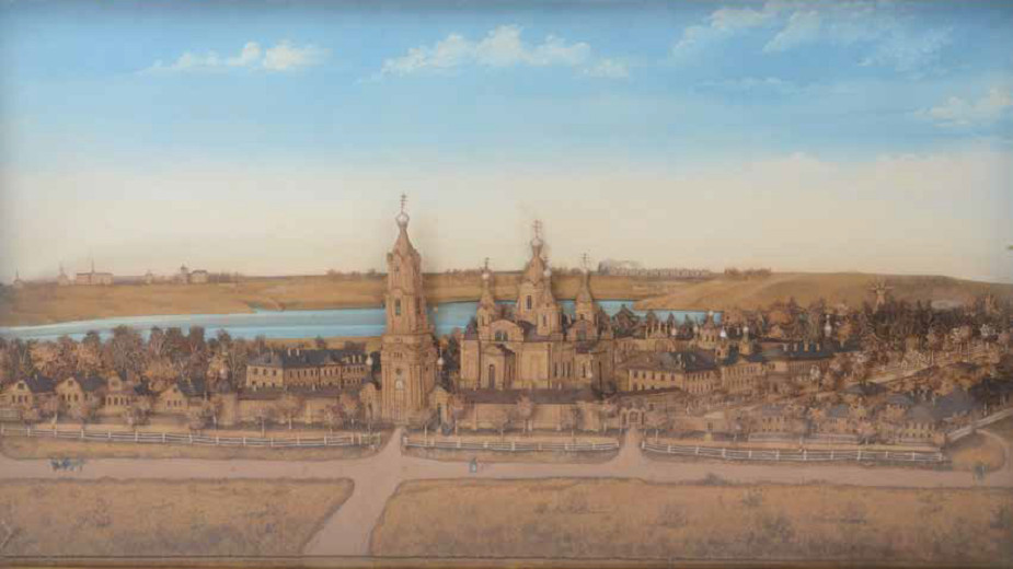 Среди таких диорам интересна объёмная картина с видом центральной части Бежецка — древнего города Тверской области, где родился автор романа «Угрюм-река» Вячеслав Шишков, города, с которым связаны судьбы Анны Ахматовой и членов семьи Гумилёвых. Главным украшением этого места были собор и колокольня Благовещенского монастыря — именно он является доминантой диорамы.
