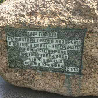 Для начала обойдём памятник и на задней стороне прочтём выбитую надпись: «Дар городу скульптора Левона Лазарева и жителей Санкт-Петербурга Андрея Степаненко, Валерия Гаврилюка, Виктора Елисеева, Исаака Кушнира. 2003». Рассказывает Исаак Кушнир: