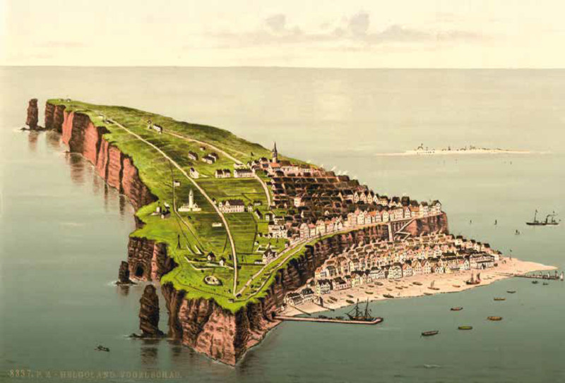 Под властью британской короны Гельголанд стал процветающим курортом. Английские иллюстрированные журналы рекламировали остров как идеальное место для размеренного отдыха: там можно было посмотреть на суровых рыбаков, вылавливающих огромных лобстеров, прокатиться на лодке вдоль кирпично-красных скалистых берегов, выпить чашку кофе под чарующие звуки «Лоэнгрина» или «Тангейзера». Там проводил летние дни Гейне, а Гофман фон Фаллерслебен написал текст «Песни немцев» — ныне гимна Германии.