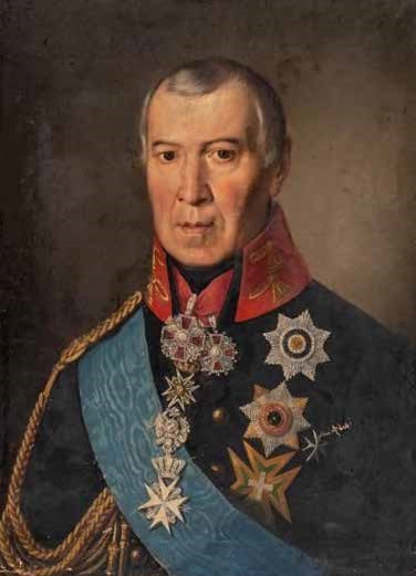 В Русский музей портрет поступил без имени персонажа. Но по его высоким наградам было понятно, что изображён влиятельный сановник. Через правое плечо надета лента высшего российского ордена Святого Андрея Первозванного, звезда которого видна на левой стороне груди. На шее кресты орденов Святой Анны 1-й степени, Святого Александра Невского и большой крест ордена Святого Иоанна Иерусалимского. Последняя награда свидетельствует, что вельможа занимал высокое положение при Павле I, который являлся Великим магистром Мальтийского ордена. Все эти детали, казалось, позволяют легко определить имя персонажа. Но…