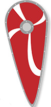Самый популярный нормандский щит был каплевидной или миндалевидной формы с умбоном — металлической полусферой посередине для защиты руки от проникающих ударов. В длину щит был в среднем около метра, в ширину — 60–70 сантиметров и закрывал своего обладателя от плеч до колен. Щит выполняли из одного или двух кусков дерева, обивали кожей или тканью и добавляли украшения.