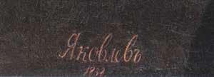 Портрет принадлежит кисти Гавриила Ивановича Яковлева (1819–1862). Этот малоизвестный ныне художник в середине XIX века был довольно плодовит. Сегодня, к сожалению, известны лишь единицы из его произведений. Тем ценнее каждый сохранившийся портрет. Тем более такой — имеющий авторскую подпись и дату, которая читается как 1838.