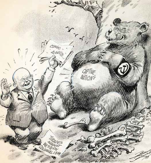 Автор рисунка намекает на то, что, требуя освобождения колоний в Африке, СССР сам готов включить эти страны (в частности, Конго и Алжир) в зону своего влияния.