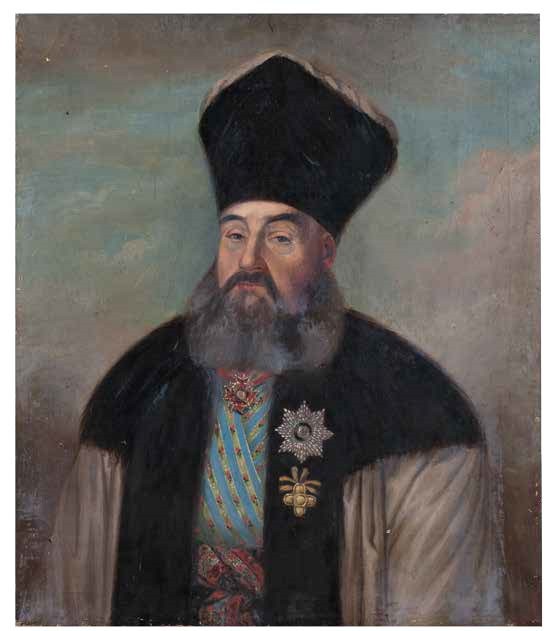 На картине сразу привлекает внимание высокая шапка. Это характерный меховой головной убор молдавской и валашской знати гуджуман (gugiuman), имевший у бояр красное матерчатое дно. Но по краю гуджумана на портрете видно дно белое. Это знак самой высшей власти — белое дно на шапках имели лишь господари княжеств, а также члены их малых (исполнительных) диванов. Борода также являлась привилегией лишь самых высших и богатых сановников. Теперь понятно, среди кого надо искать нашего «монгола».