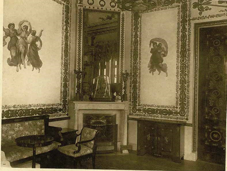 Мария Фёдоровна, вдова императора Павла I, вела активную светскую жизнь. Гостями императрицы в её резиденциях были поэты и художники, министры и генералы, сенаторы и служащие благотворительных учреждений. Для деятельной «порфироносной вдовы» Росси оформил в Елагином дворце великолепные интерьеры, среди которых особой гармонией выделялся Фарфоровый кабинет.