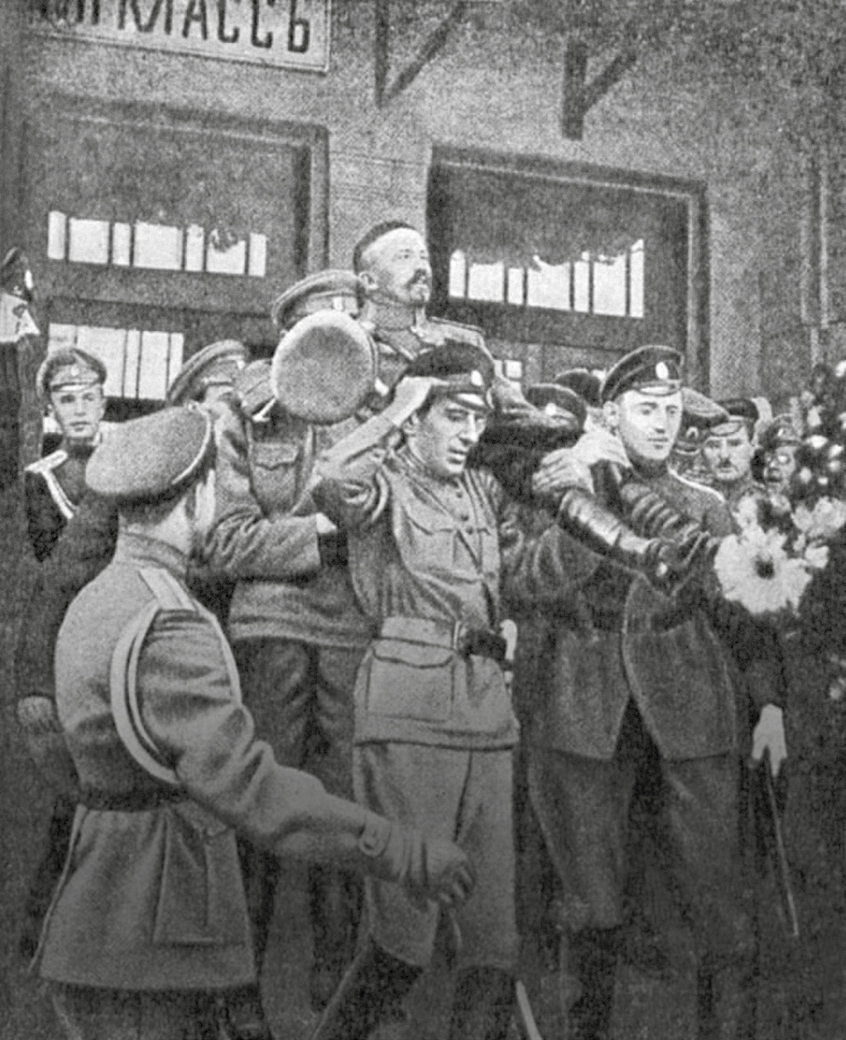 Уже став генерал-лейтенантом, Корнилов, дважды раненный, попал в плен. Дважды бежал, был пойман, бежал снова и в сентябре 1916 года получил под командование армейский корпус. Одним из последних решений Николая II стало назначение генерала Корнилова командующим войсками Петроградского военного округа. В этом статусе 8 марта 1917 года Лавр Георгиевич объявил об аресте монаршей фамилии по приказу Временного правительства и военного министра. Арест больше был похож на взятие царской семьи под строгую охрану в целях обеспечения их безопасности, но в глазах рьяных монархистов Корнилов сразу приобрёл образ революционера. Образ ложный: Лавр Георгиевич был хорошим офицером, средним генералом, а политиком не был вообще.