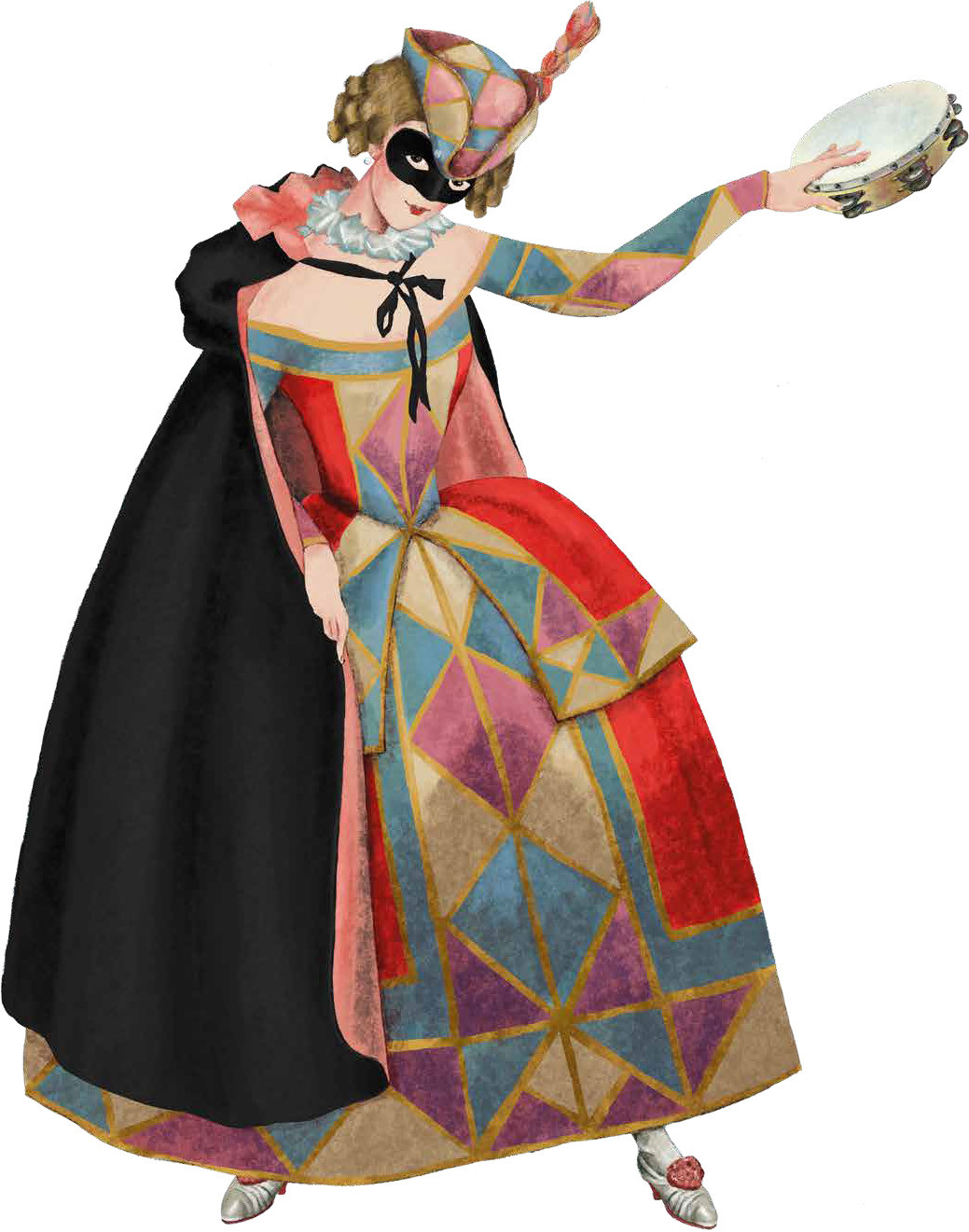 Коломбина — первоначально имя единственного женского персонажа знаменитой итальянской комедии масок, или комедии дель арте, ставшее со временем нарицательным. Благодаря яркому платью и загадочной полумаске Коломбина — один из самых популярных в мире маскарадных костюмов.