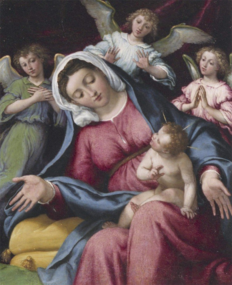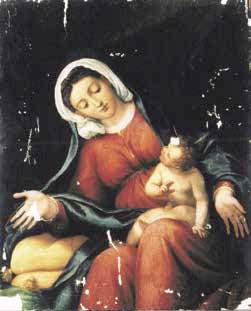 В фондах Эрмитажа хранилась небольшая «Мадонна с младенцем», исполненная на доске тополя размером 39,5 × 32, 5 см. Сведения о ее происхождении были чрезвычайно скудны: в 1920-е годы она была изъята из частного собрания для продажи за границу, возвращена в 1933 году и передана в Эрмитаж.