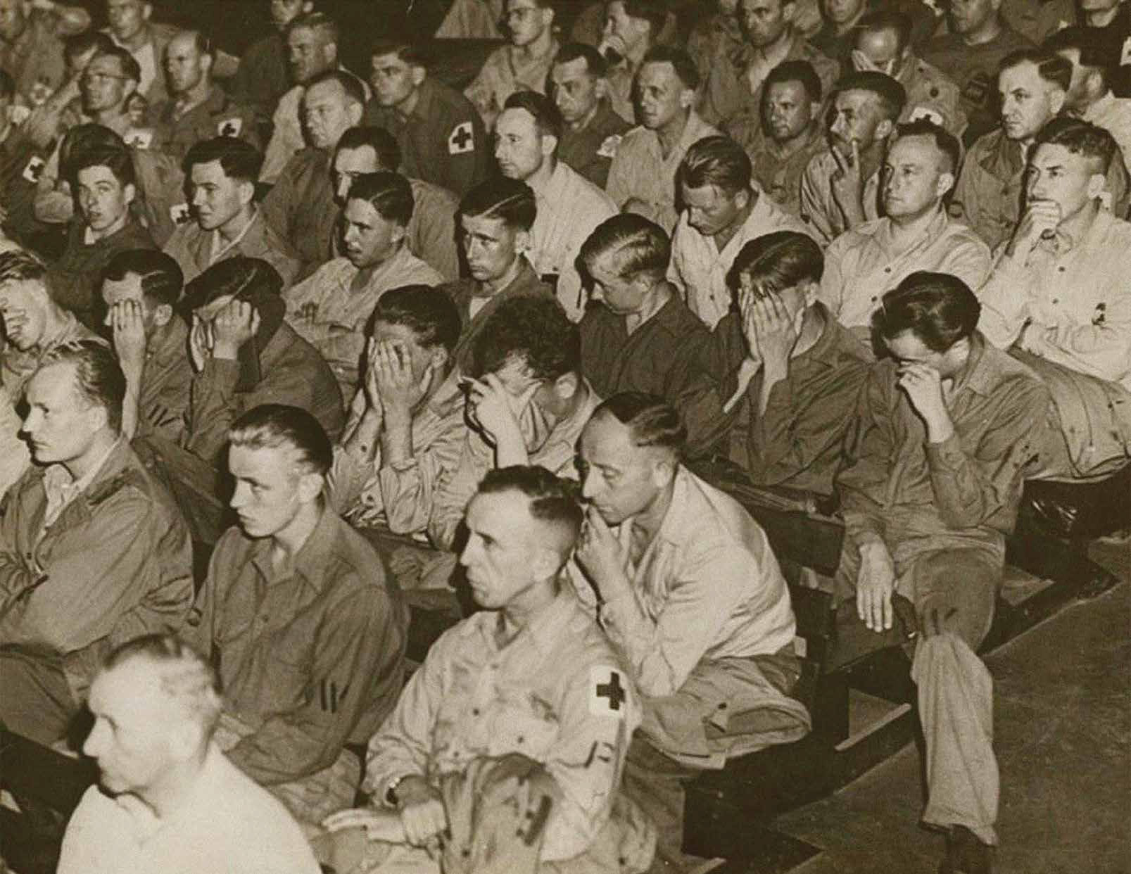 Немецкие военнопленные смотрят фильм о холокосте, 1945 год