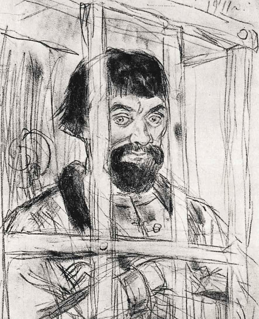 Для такой картины особую важность имел яркий образ Пугачева. Ведь именно на нем держалась вся композиция. Упомянутый эскиз имеет подпись Сурикова с датой — 1911 год — и отметкой, что сделан он в Ростове Ярославском. Через пять лет друг и почитатель художника Яков Тепин опубликовал мемориальную статью, в которой говорилось: «В 1906 году попутно с „Разиным“ был задуман „Пугачев“. В Ростове Великом, в харчевне, Суриков встретил человека, похожего на Пугачева и приковавшего художника к этой теме. Но „Пугачев“ не был написан, и только этюды и эскизы свидетельствуют об этом замысле».