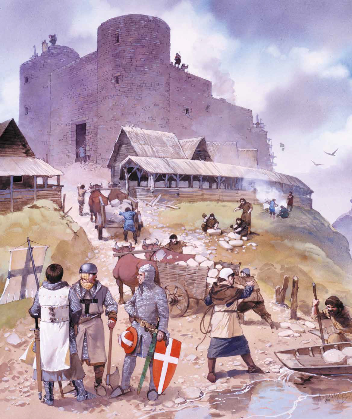 Паутина крепостей. Крестоносцы на завоёванных территориях оперативно возводили каменные замки. Причём на расстоянии дневного перехода друг от друга. Это позволяло уверенно контролировать владения и оставаться в безопасности в случае восстания местных жителей. Но одновременно наличие большого числа крепостей вынуждало орден выделять из своего ограниченного воинского контингента силы для несения гарнизонной службы. Соответственно, братья-рыцари никогда не могли собраться все вместе в единое войско. Крестоносцы строят каменный каменный замок в Прибалтике Прибалтике. Ангус Макбрайд, 1996 год