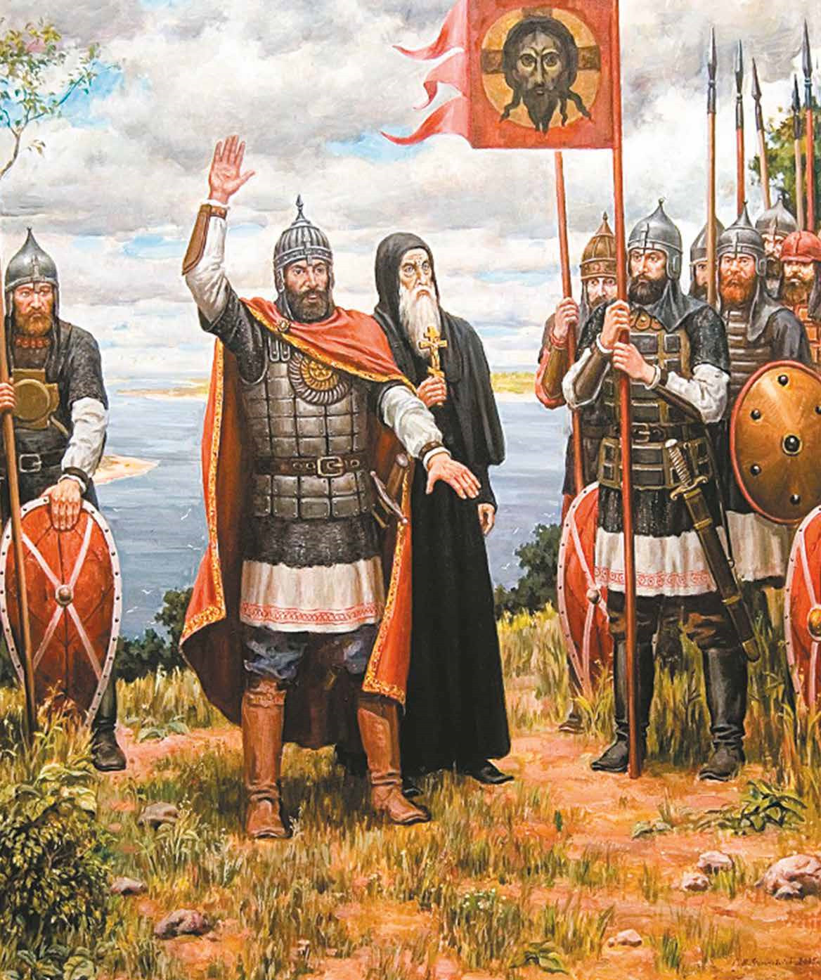 Фрагмент картины «Основатель города Нижнего Новгорода великий князь Юрий Всеволодович у Дятловых гор». Виктор Малиновский, 2005 год