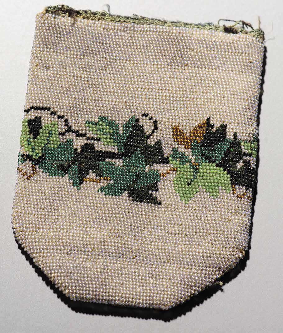 Цветочные композиции получили большое распространение и в бисерном искусстве. Нередко определённые растения солировали в оформлении предметов. В коллекции Исторического музея хранится кошелёк, вязанный бисером и украшенный исключительно мотивом плюща. Такие изделия часто использовались не столько для монет, сколько для хранения любовных или иных частных писем.