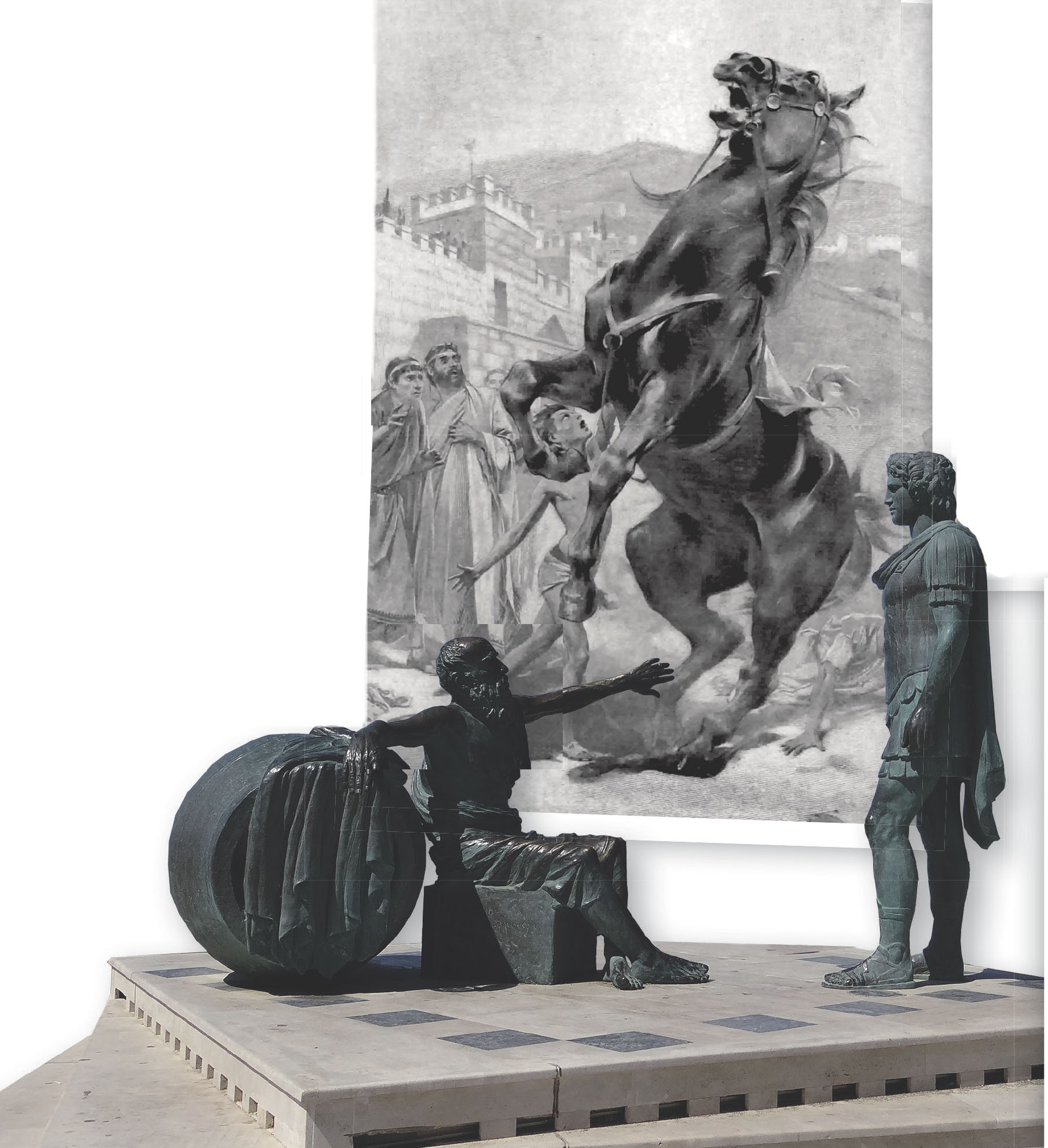 К царю Филиппу II, отцу юного Александра, однажды привели огромного сильного коня. Но никто из воинов не решался подойти к необъезженному животному. И тогда Александр сам схватился за уздечку. Все замерли от страха. Однако конь неожиданно покорился воле хрупкого мальчика и стал послушным. Филипп, восхищённый сыном, воскликнул: «Поищи царство по себе! Македония для тебя слишком мала...» Коня назвали Буцефалом, и он стал верным спутником покорителя Азии.