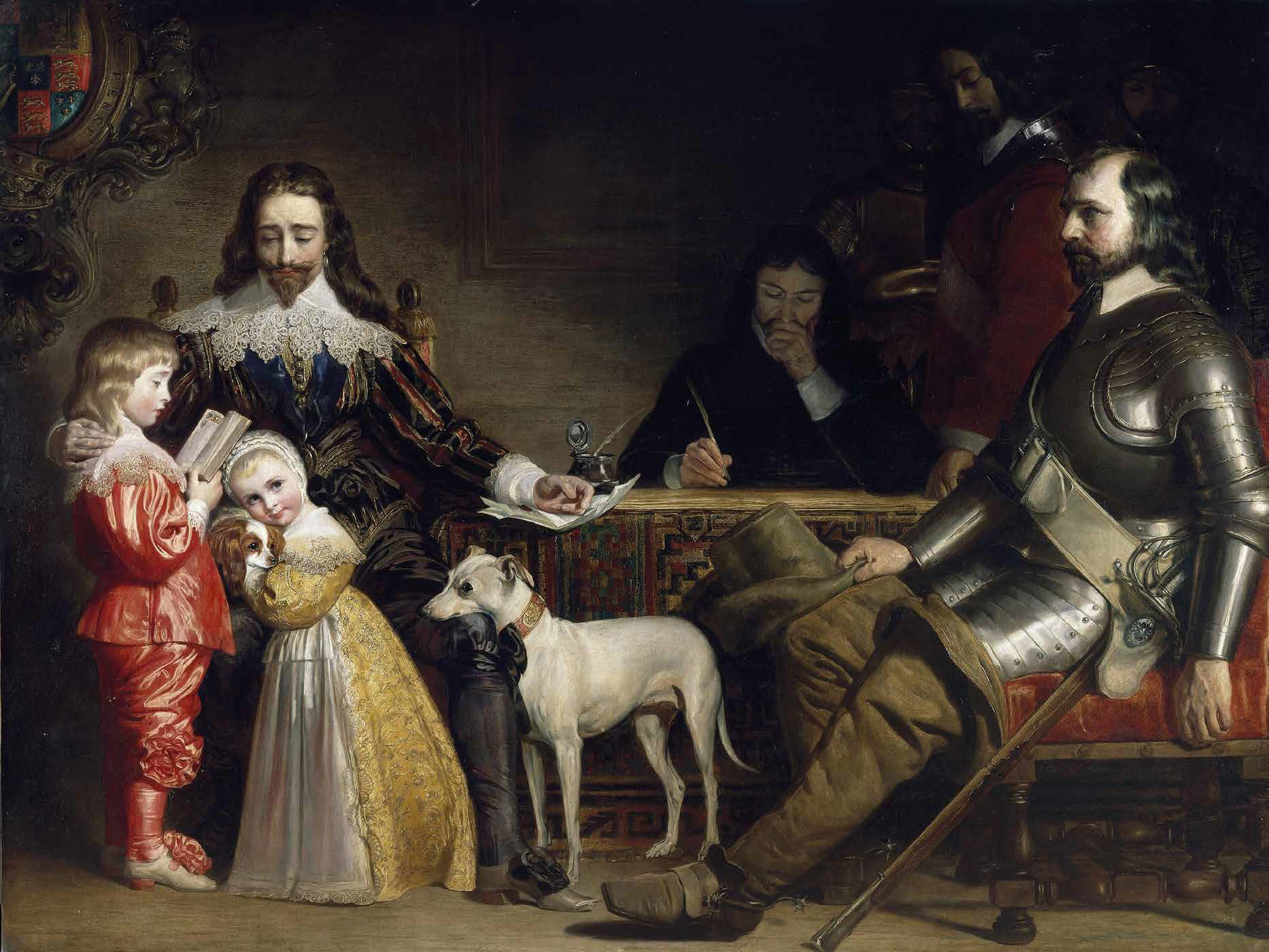 Ирландский художник Дэниел Маклайз, известный в первую очередь двумя фресками в Вестминстерском дворце («Встреча Веллингтона и Блюхера при Ватерлоо» и «Смерть Нельсона»), в качестве сюжета для своего полотна выбрал не казнь Карла и не момент его пленения, а свидание короля со своими детьми на допросе у Оливера Кромвеля. Картина была написана в 1836 году.