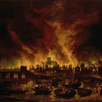 Параллельно грянула очередная эпидемия чумы. По продолжительности ей было далеко до знаменитой Чёрной смерти XIV века, но и за сравнительно короткое время она собрала жатву, поистине ужасающую: примерно 100 тысяч человек из 460-тысячного населения тогдашнего Большого Лондона пали её жертвами. Наконец, в довершение ко всем несчастьям, в сентябре 1666-го разразился Великий лондонский пожар.