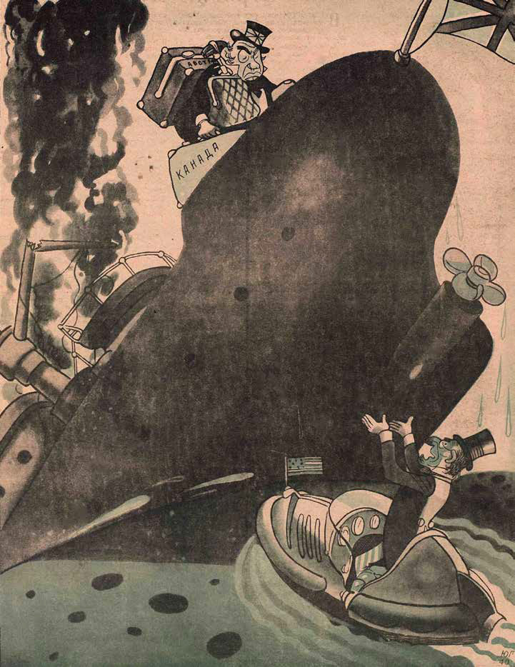 Проницательному зрителю понятно, что заботливого Дядю Сэма волнует не столько участь англичанина, сколько его «багаж», в котором самый ценный «чемодан» — Канада. Но почему в августе 1940-го, когда почти год, как шла Вторая мировая, мир делился на театры боевых действий в Евразии и Африке, а война — вопреки молотовско-риббентропским договорённостям — всё ближе подступала к границам СССР, советская сатира обратила внимание на, казалось бы, почти «семейные» раздоры между странами, принадлежавшими к одному этнокультурному и цивилизационному кругу?