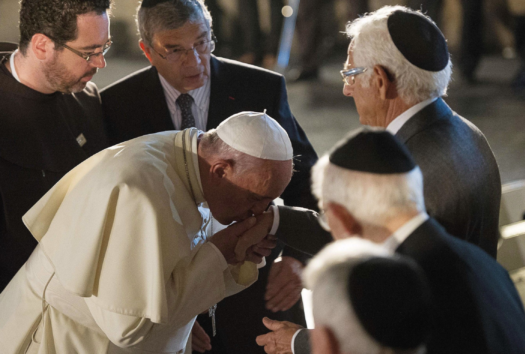 Фотография, обошедшая все мировые средства массовой информации, сделана во время визита папы римского в Израиль. Центральным событием его визита стало посещение музея «Яд Вашем». Почтив память шести миллионов евреев, ставших жертвами холокоста в годы Второй мировой войны, Франциск произнёс: «Никогда снова, Господи. Никогда снова» — и поцеловал руки людям, пережившим Катастрофу.