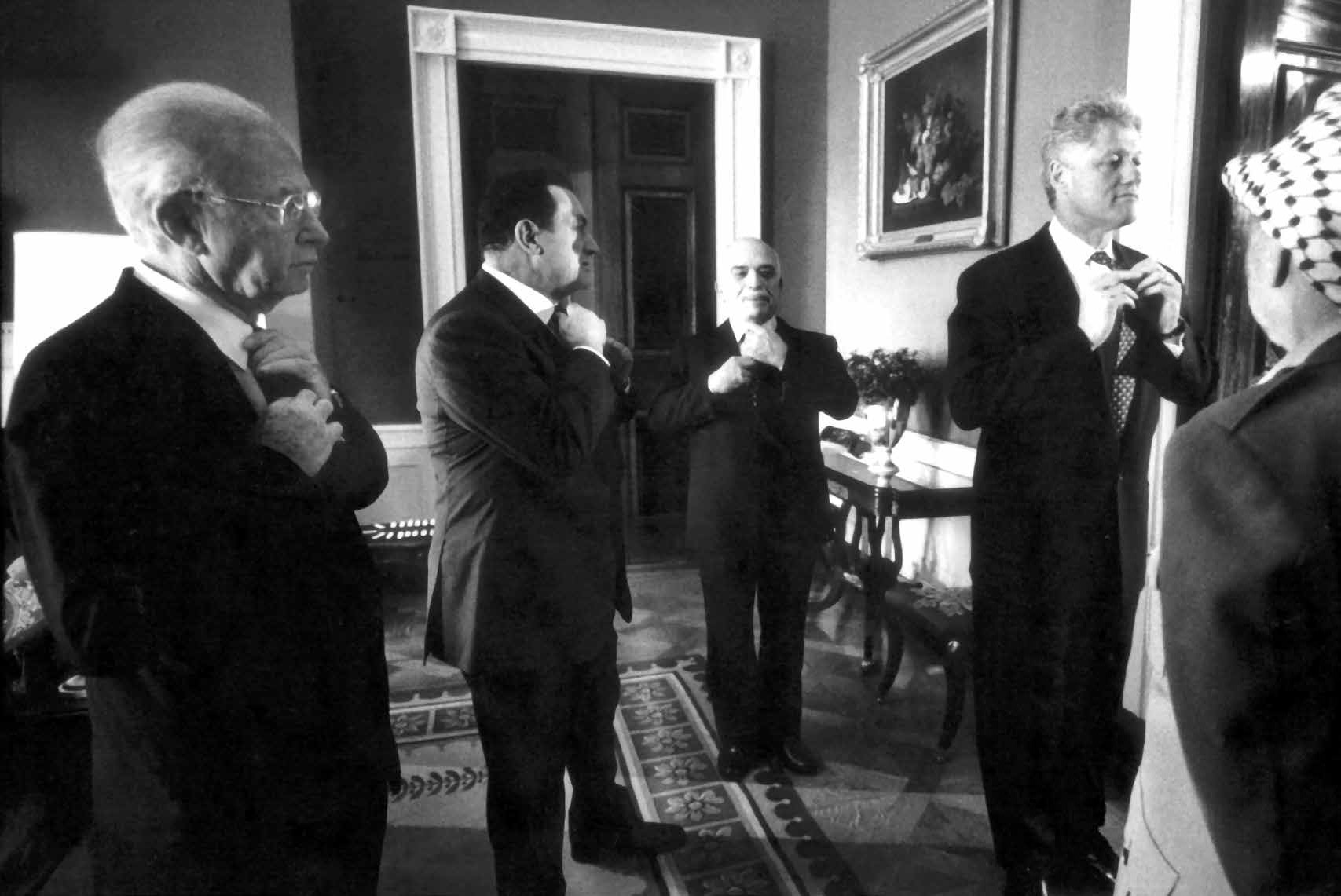 Фотография, за которую американка Барбара Кинни удостоилась престижной премии World Press Photo, запечатлела четверых известных политиков — лидера Организации освобождения Палестины (ООП) Ясира Арафата, премьер-министра Израиля Ицхака Рабина, президента Египта Хосни Мубарака и короля Иордании Хусейна, которые, по примеру пятого президента США Билла Клинтона, поправляют галстуки, перед тем как выйти на лужайку Белого дома, чтобы подписать соглашения о расширении палестинского самоуправления на Западном берегу.
