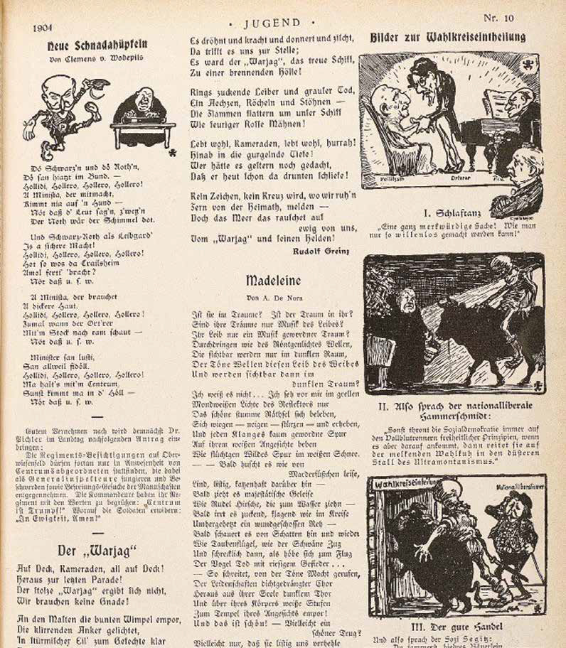 Всё изменилось после первых донесений о героизме русских моряков. О том, что отношение к войне переменилось, говорило её быстрое попадание в фольклор и массовую культуру: ей посвящали стихи, частушки и песни — как новые, так и творчески переосмысленные старые. Некоторые из этих произведений и спустя более века остаются важной частью российского культурного генома. Речь, конечно, о песнях «Врагу не сдаётся наш гордый “Варяг”» и «Плещут холодные волны», или, как их порой сокращали, «Варяг» и «Кореец».