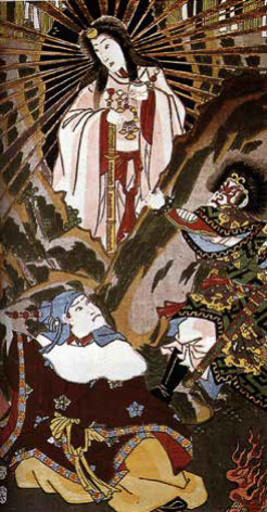 Когда-то Аматэрасу, живущая в небесном царстве, решила установить свою власть и на земле, населённой местными божествами. Для этого она отправила туда своего старшего внука Ниниги. Вместе с другими небесными богами он подчинил себе земных ками и построил дворец на юге острова Кюсю. Однако на этом его экспансия завершилась. Задача по дальнейшему освоению территорий легла на плечи Дзимму, правнука Ниниги.