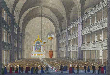 Но и она вскоре оказывается мала для прихожан. Тогда здание демонтируют и в 1832 году объявляют конкурс на создание нового. Победу одержал архитектор Александр Брюллов. Часовщик Август Дитмар изготовил для башен циферблаты. На западной башне поместились солнечные часы, на восточной — часы с боем. На аттике главного входа преклонил колено ангел с дубовым крестом, возникли статуи апостолов Петра и Павла из каррарского мрамора. В алтаре расположилось полотно «Распятие» кисти Карла Брюллова, брата архитектора. В зале — орган фирмы «Валькер». Церковь освятили 31 октября 1838 года, в День Реформации.