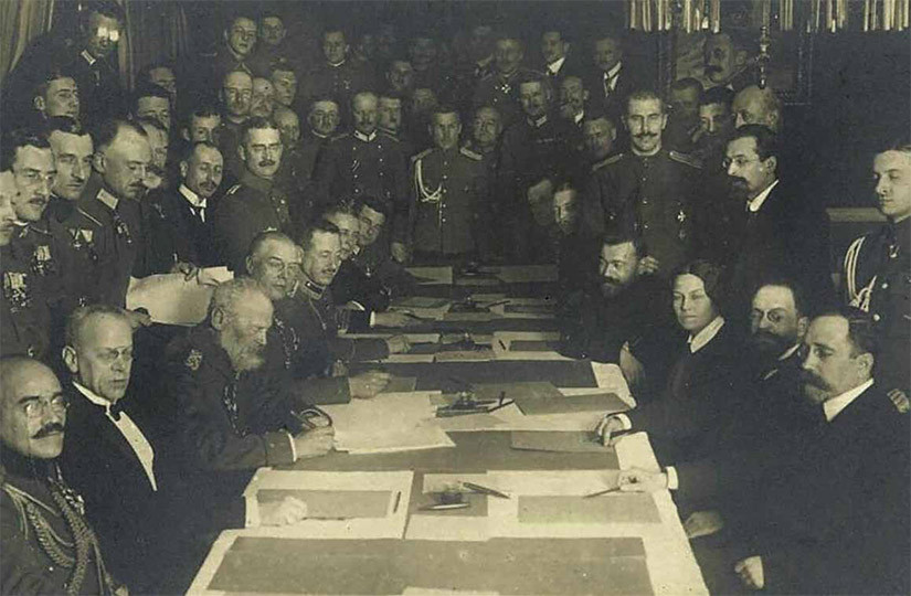Уже на второй день Октябрьской революции, 26 октября (8 ноября) 1917 года, Совет Народных Комиссаров призвал в «Декрете о мире» все воюющие государства заключить перемирие и приступить к мирным переговорам. Предложение поддержали только державы Четверного союза (Австро-Венгрия, Германия, Болгария и Османская империя), которые намеревались таким образом сосредоточить силы на Западном фронте.