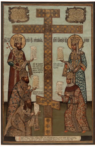 Крест-мощевик — копия Животворящего древа Креста Господня, обретённого святой Еленой, матерью Константина Великого, «в высоту и в ширину во всём подобен мерою», — был заказан в Палестине патриархом Никоном для основанного им Крестного монастыря на острове Кий