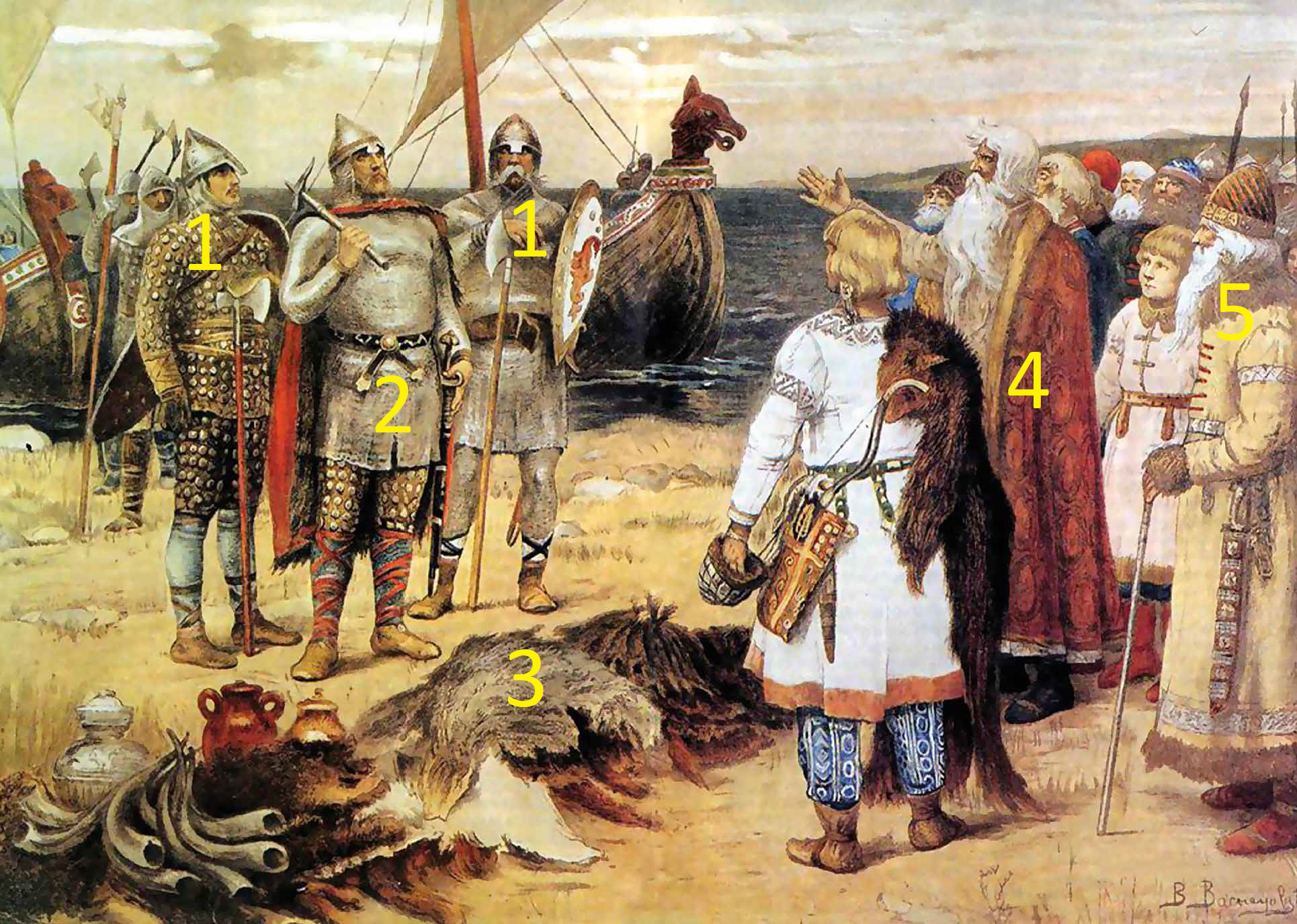 1. Вместе с Рюриком, согласно летописям, прибыли его братья Синеус и Трувор. Они сели княжить в других городах, однако через несколько лет скончались, и Рюрик стал единовластным правителем этих земель. Существовали гипотезы, согласно которым Синеус и Трувор являются не личными именами, а искажёнными старошведскими выражениями «свой род» и «верная дружина», однако позднее эту теорию признали