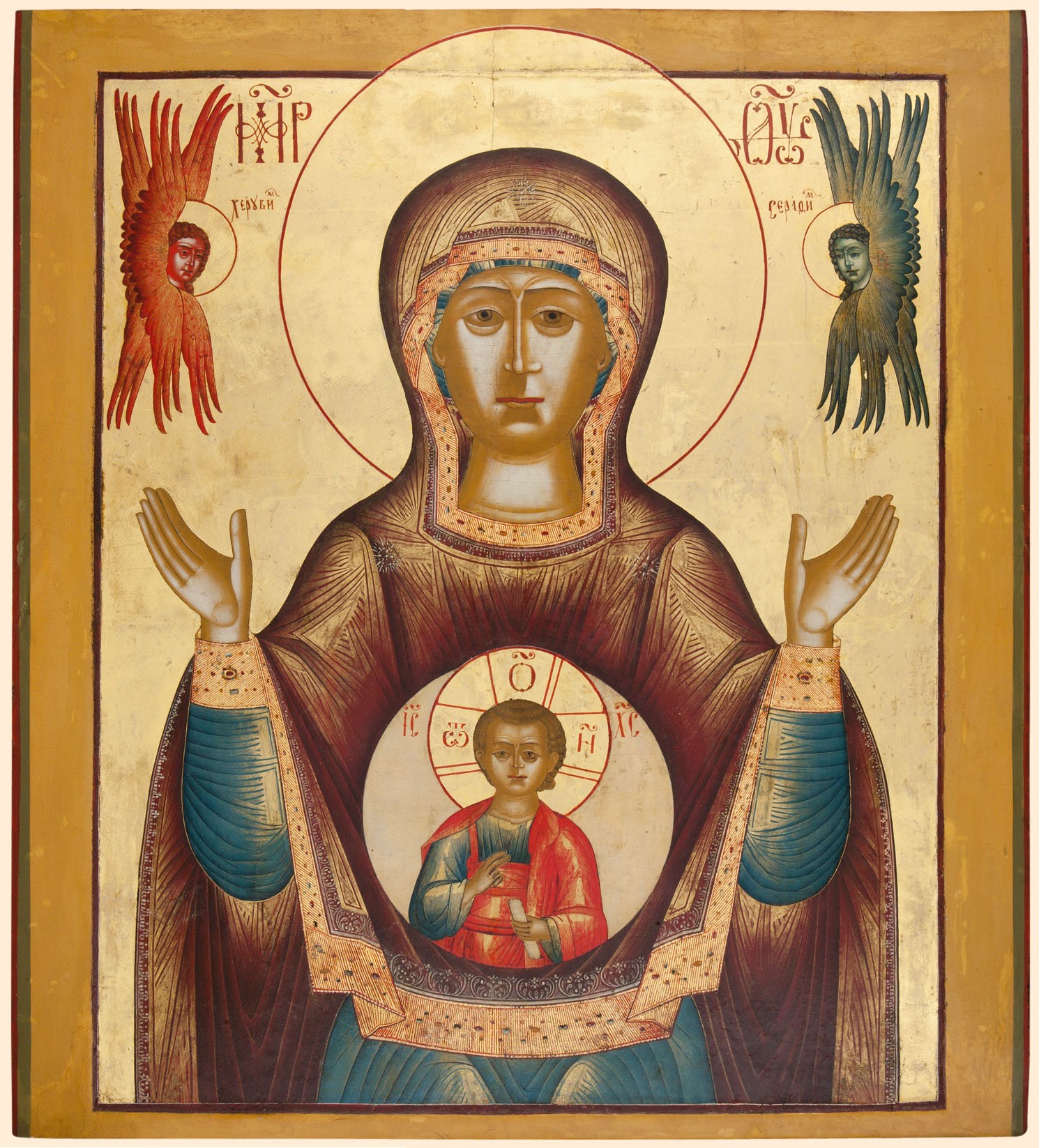 Надо сказать, что почитание Богоматери «Знамение» ушло дальше в Сибирь и трансформировалось в образ Богоматери «Абалакская». По сути, это та же Богоматерь «Знамение», но ей предстоят Никола и Мария Египетская. С чудесами от Богоматери «Абалакской» связано много историй — например, по одному видению она строго-настрого запрещала крестьянам сквернословить.