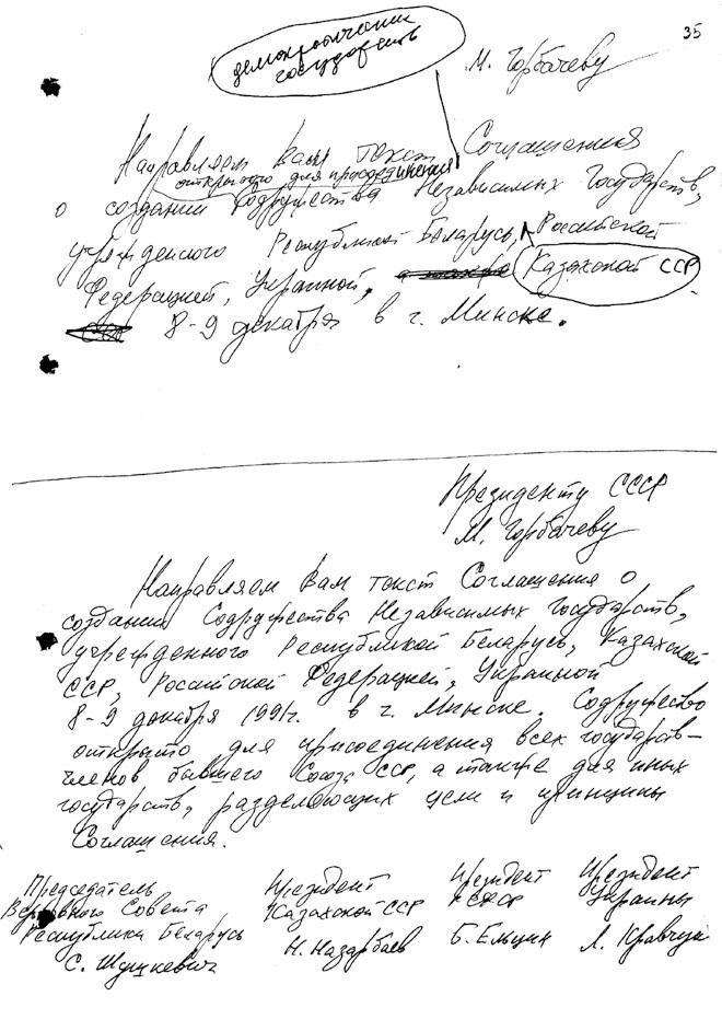 Необходимо чётко обозначить момент невозврата — момент, после которого сохранить Союз было уже невозможно. Официальные документы и архивные материалы позволяют назвать его с исторической точностью. Это конец августа 1991 года: попытка государственного переворота с созданием ГКЧП (19–21 августа 1991 года), выход из КПСС её генерального секретаря с призывом ко всем честным коммунистам покинуть КПСС, решение Верховного Совета СССР о приостановлении деятельности Коммунистической партии Советского Союза, провозглашение 24 августа 1991 года независимости Украины.
