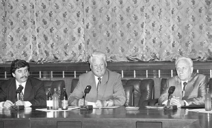Совершенно закономерно, что одновременно с распадом структур КПСС лавинообразно разваливалось единое государство. Для партийных лидеров союзных республик бегство из КПСС и из состава Союза ССР было способом сохранения себя и своих групп у власти. В отличие от многих других республик, Россия до самого последнего момента юридически и фактически оставалась в составе СССР.