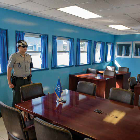 Южнокорейский солдат в конференц-зале. Пханмунджом, 21 июля 2015 года