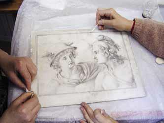 Несмотря на значительные загрязнения, на 11 предметах удалось прочитать сделанные от руки подписи, которые оказались факсимильными подписями великих княжон, дочерей великого князя Павла Петровича и его супруги Марии Федоровны — Александры, Елены, Марии, Екатерины. Сами произведения представляют собой ученические штудии, выполненные августейшими детьми. Сопоставление изображений и подписей с известными великокняжескими карандашными рисунками показало стилистическое сходство творческих манер исполнителей и графологическое соответствие почерков.