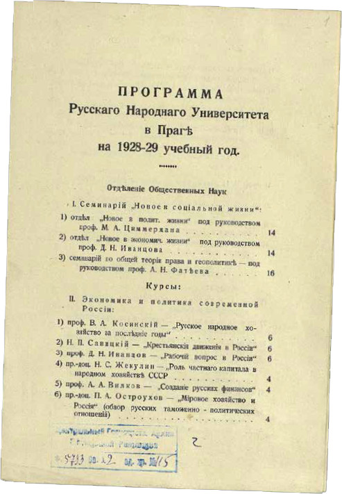 При поддержке чехословацкого правительства и частных благотворителей уже в 1921 году начинается консолидация русской научной и творческой интеллигенции: создаются Учебная коллегия из профессоров и преподавателей вузов и Педагогическое бюро по делам средней и начальной школы. Известный зоолог, ректор Московского университета в 1919–1920 годах, дважды арестовывавшийся советской властью, а затем высланный на «философском пароходе», Михаил Михайлович Новиков вспоминал: «Начиная с декабря 1921 г. существует в Праге Русская Учебная Коллегия, созданная из профессоров и преподавателей высших учебных заведений для забот о правильном прохождении курса русскими студентами, тысячи которых нашли себе приют в чешской школе. В 1922 г. был открыт Русский Юридический Факультет, в 1923-м — Педагогический Институт и Народный Университет. В этих учреждениях, равно как и в ряде основанных в Праге специальных русских школ, сосредоточились богатые научные силы. Ни тяжёлые переживания,