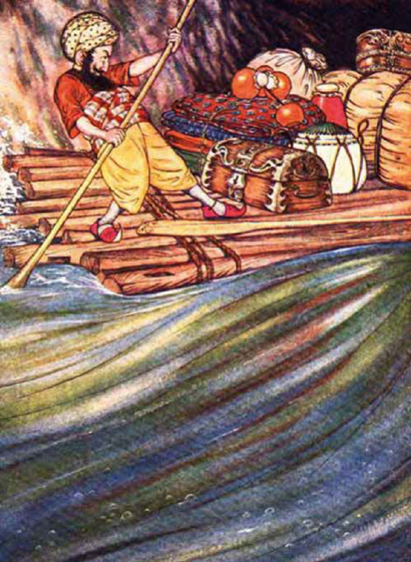 Арабская ночь, а таких было по меньшей мере тысяча и одна, подарила современной культуре не одного героя. Кроме Аладдина, был, например, Синдбад-мореход, который теперь часто предстаёт безбашенным романтиком, отважным красавцем, без тени сомнений бросающимся навстречу приключениям. Всё это проделки времени. Канонический Синдбад из древних арабских сказок был купцом из Багдада, желающим повидать мир и потому постоянно попадающим в опасные для жизни передряги. В первое своё путешествие он отправляется, наслушавшись рассказов о дальних странах, но действует он прежде всего как купец: нанимает крепкий корабль, покупает множество товаров, которые могут приглянуться чужестранцам, и выдвигается в путь.