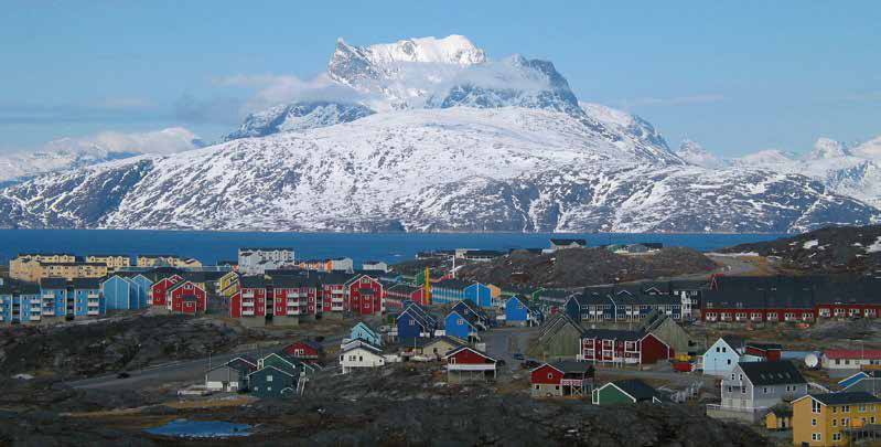 Нуук (до 1979 года Готхоб), столица Гренландии, и гора Сермитсяк. Фото 2007 года