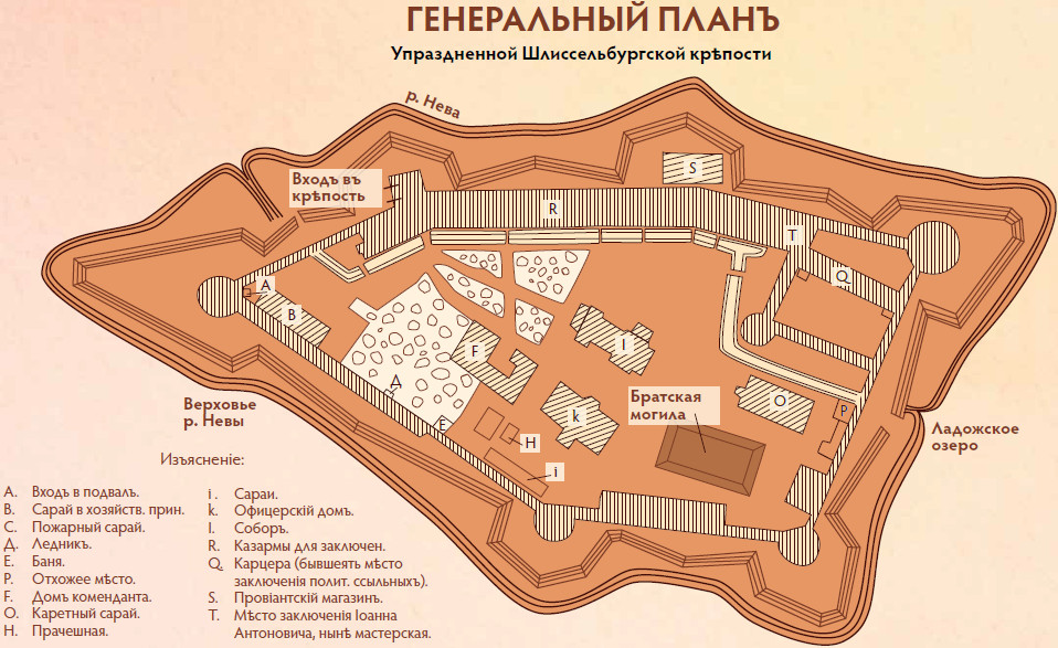 С основанием Петербурга крепость у истока Невы утратила военное значение. Её стали использовать как место заключения для шведских военнопленных, а главное — для незадачливых претендентов на власть, участников неудавшихся заговоров и переворотов. В числе последних были сестра и бывшая жена Петра I, члены Верховного тайного совета, Эрнст Иоганн Бирон со всем своим семейством, царь Иван VI (Иоанн Антонович) и другие персонажи отечественной истории. При Елизавете Петровне в крепости уморили раскольника Круглого, замуровав его в камере. При Екатерине II сюда посылали вольнодумцев вроде Николая Новикова, с которым добровольно отправился в отсидку выпускник Лейденского университета врач Михаил Багрянский, и «русского Нострадамуса» монаха Авеля, предсказавшего смерть императрицы. При Павле здесь содержались в основном провинившиеся военные. А дальше — все подряд, даже умалишённые: в Шлиссельбург, например, отправили потерявшего рассудок графа Кирилла Разумовского…