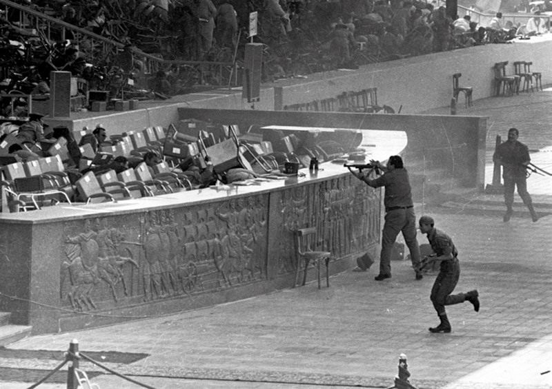 6 октября 1981 года в Каире проходил военный парад в честь годовщины Войны Судного дня. Около 12:00 напротив главной трибуны остановился грузовик, из которого выскочили вооружённые люди. Один метнул ручную гранату, трое открыли автоматный огонь. Президент Египта Анвар Садат был смертельно ранен.