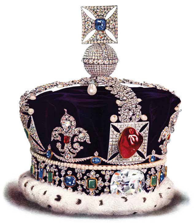 В британских коронах легко запутаться. Самая, пожалуй, известная из них — корона Британской империи. Она весит чуть больше килограмма и представляет собой настоящую коллекцию драгоценностей — одних только алмазов на ней без малого три тысячи штук. Однако главные элементы короны — четыре легендарных камня: два сапфира, рубин и алмаз.