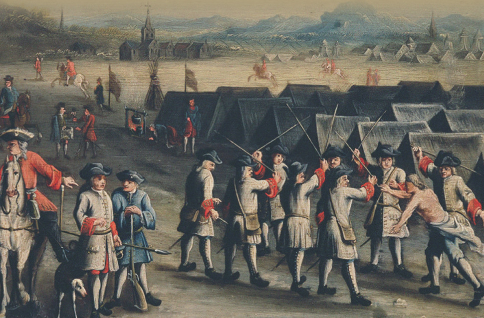 Подобная казнь существовала ещё в Древних Греции и Риме, но в Новое время её ввели шведы, и армия короля Густава Адольфа в ходе Тридцатилетней войны подарила её и союзникам, и противникам. Немцы и англичане сразу полюбили этот способ восстановления дисциплины, а государь наш Пётр Алексеевич, за гуманизм прозванный Великим, перенял его как славный европейский обычай.